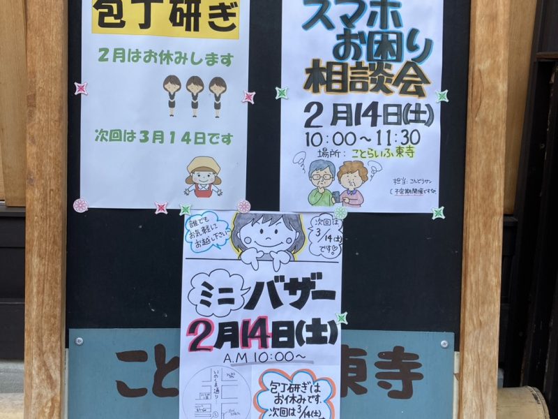 2月8日(土)はミニバザーと包丁研ぎがあります。まだまだ寒いですがええモン見つけに来てくださいね! 大人気の包丁🔪研ぎ! 今月もキレッキレのピカピカにいたしまーす✨✨